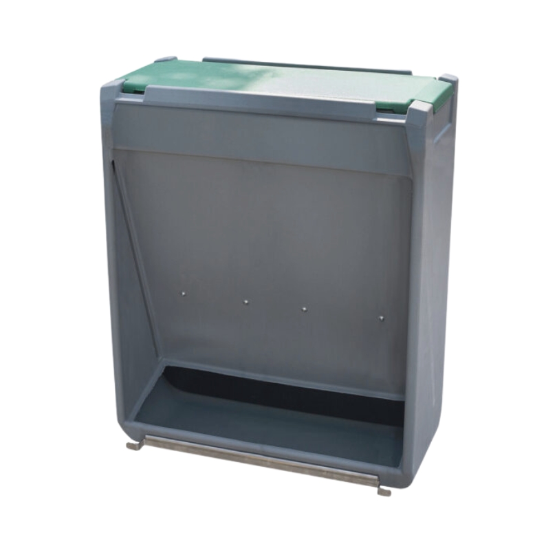 Fabriqué en une seule pièce robuste, l’AdlibFeeder est facile à nettoyer et à entretenir. Son couvercle à charnière peut être monté de deux façons, ce qui facilite le remplissage et l’accès à la nourriture. La glissière d’alimentation réglable permet d’adapter le débit selon le nombre de veaux ou la taille des animaux.