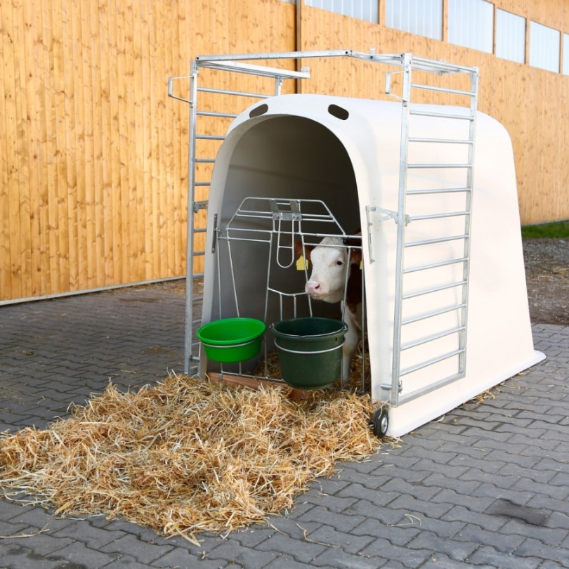 Cette niche à veau Prémium est un choix durable pour les éleveurs exigeants. Sa conception robuste et son système d’aération optimisé garantissent un environnement sain pour le veau, favorisant sa croissance et son confort. Grâce à sa grande taille, elle offre une meilleure protection du veau contre les intempéries et plus d’espace pour l’éleveur lors des soins au veau.